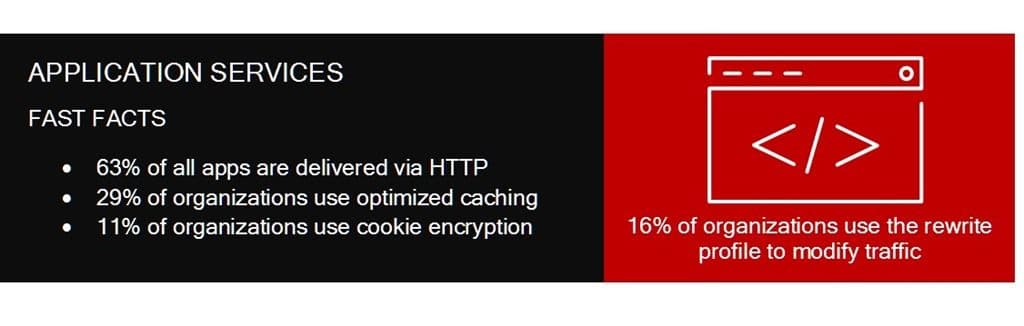 In particular, the use of SSL termination has risen to 82%. SSL termination is critical for security and routing at the application layer as it enables BIG-IP to decrypt traffic to inspect and direct.