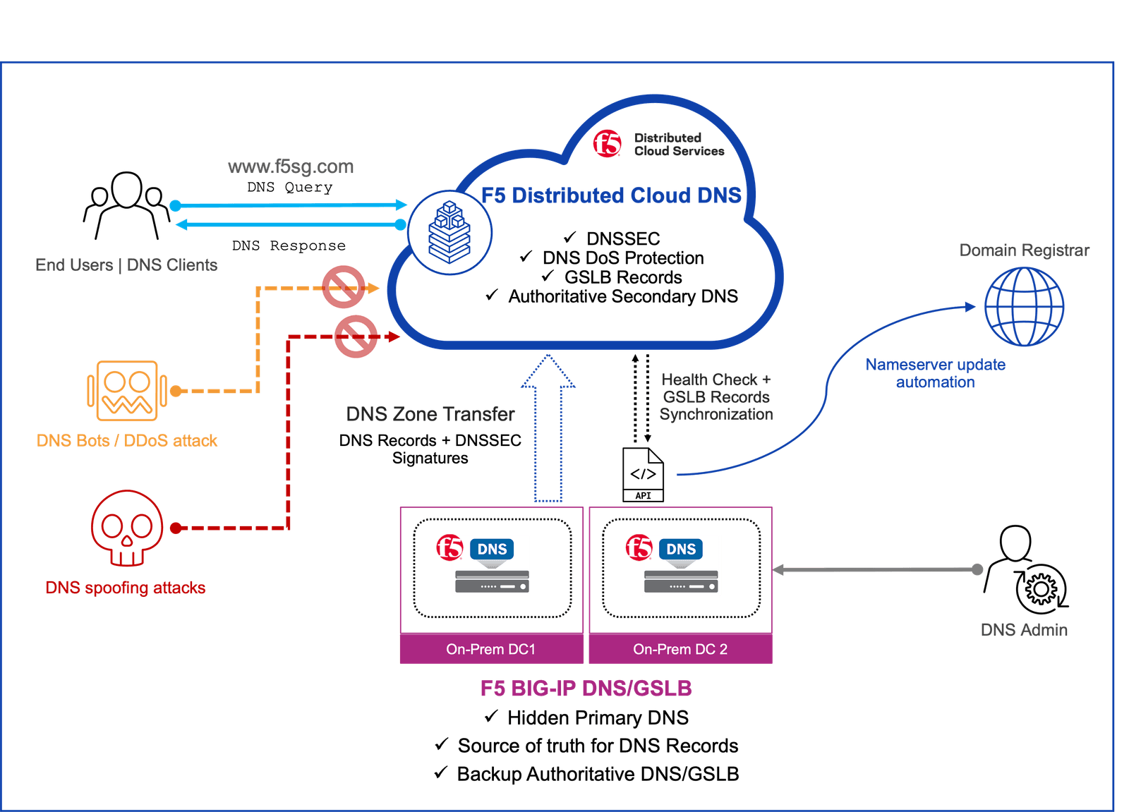 - Ease of configuration and Integration on Distributed Cloud DNS and BIG-IP DNS, with API-first automation