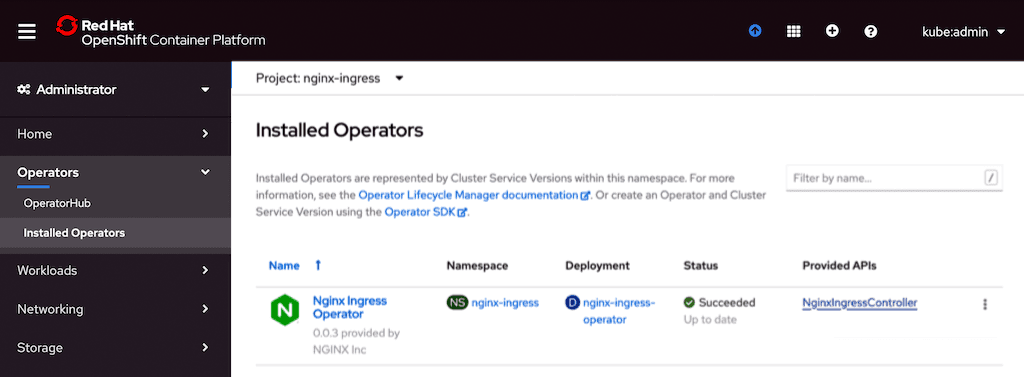 Here’s a video showing how to install the NGINX Ingress Operator, followed by a written summary with screenshots.