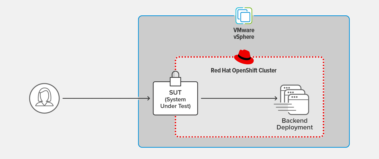 The SUT and backend deployment ran in an OCP cluster hosted on VMware vSphere 6.7.0.45100.
