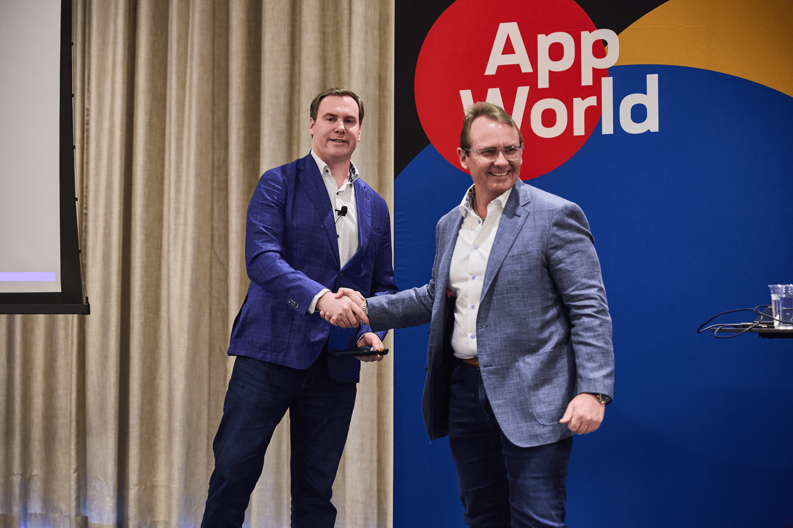 F5's Chief Revenue Officer Chad Whalen congratulates Colin Barr of Xcel Energy upon winning F5's inaugural Customer Innovation Award.