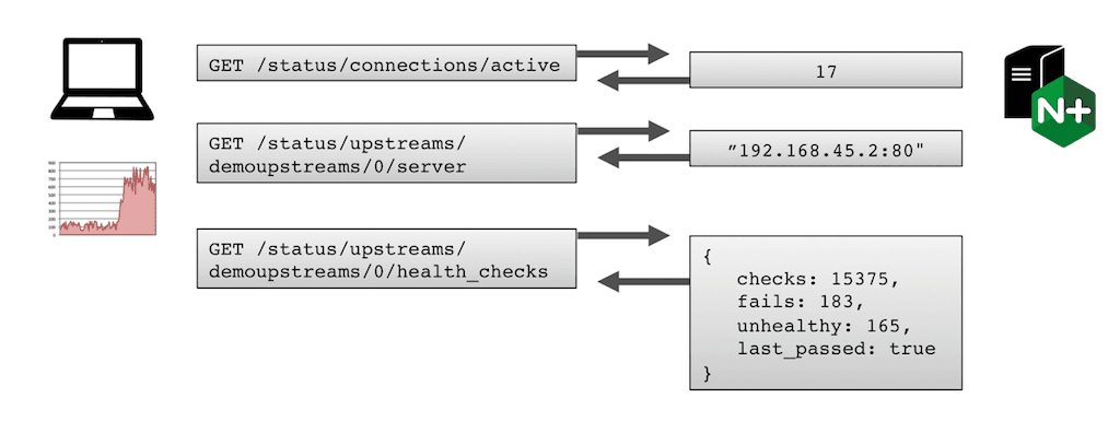 In previous releases of NGINX Plus, requests for the live activity monitoring data generated by the extended status module returned a massive amount of internal data describing current activity and state. However, if all you want to do is to monitor one counter (for example, request counts) or you just want to get the health status of the nodes in your upstreams, then it’s inefficient to grab the entire set of status data. With Release 4, you can use a RESTful API to drill down and retrieve subsets of the data, or just a single value, making monitoring more efficient and lightweight.