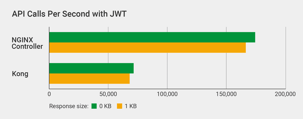 The API Management Module handles more than 2x as many JWT‑authenticated API calls per second as Kong.