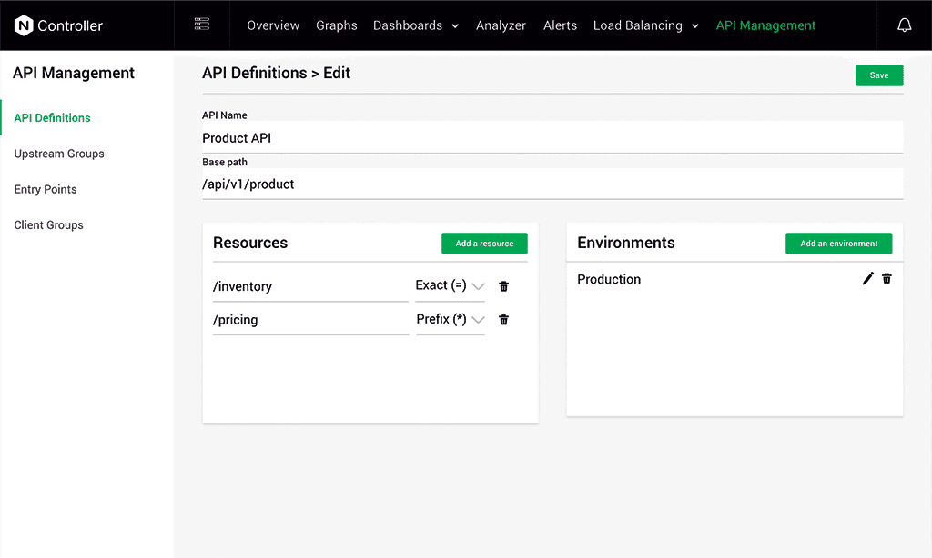 NGINX Controller is a control‑plane solution that manages the NGINX Plus data plane. NGINX Controller enables you to manage the entire lifecycle of NGINX Plus, as a load balancer, API gateway, or a proxy in a service mesh environment. With NGINX Controller’s API Management Module, you can define, publish, secure, monitor, and analyze APIs.