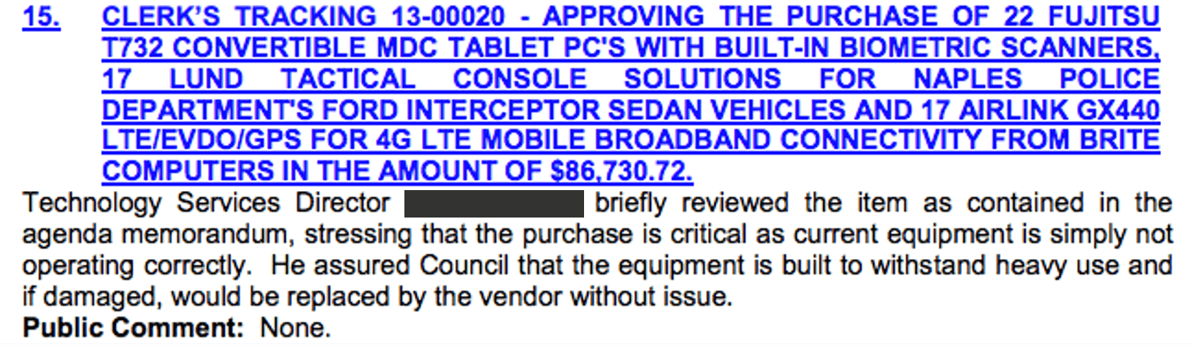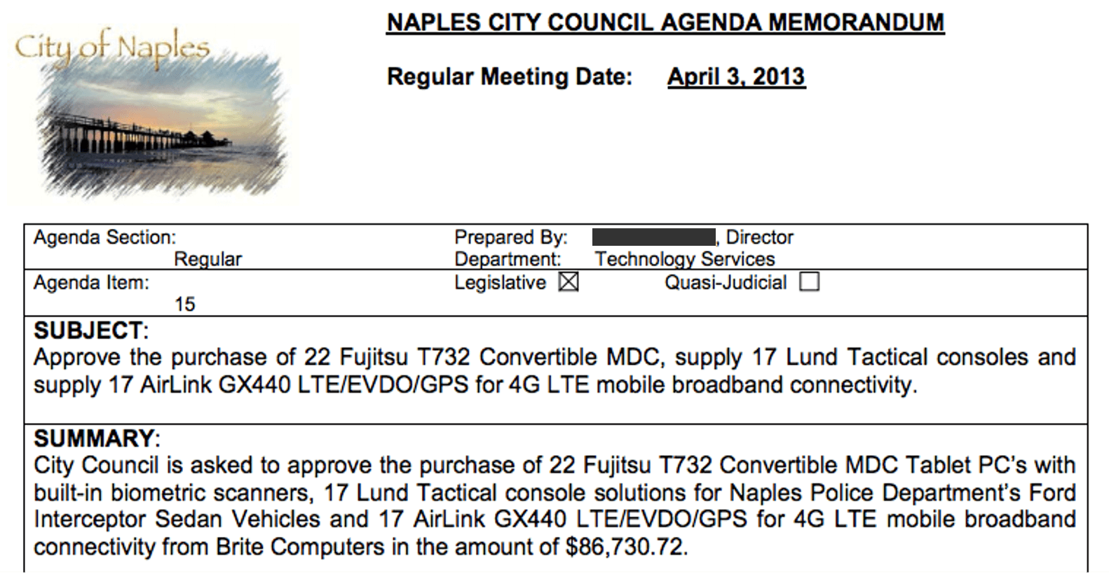 Figure 3: City of Naples Sierra Wireless Airlink GX440 Purchase Approval