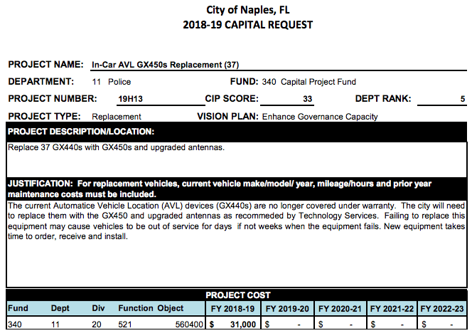 Figure 10: City of Naples Capital Request to replace outdated cellular gateways