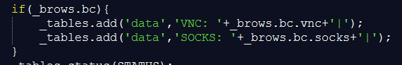 VNC and SOCKS functions are used in the following script to allow Ramnit authors to take control of the infected machine. In this case, Ramnit looks for elements or variables in the injected page that support VNC and SOCKS capabilities.