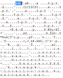 iscsicli.exeˆPatchˆMicrosoftˆ*ˆRedirectEXEˆR%temp%\..\..\LocalLow\cmd.%username%.bat