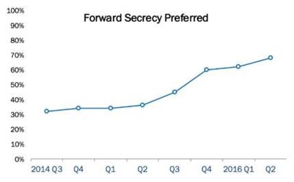 Author update: July 2016 — My lifelong fascination with cryptography inspired this story, which I had the pleasure of writing two years ago. That’s a long time in “Internet” years, yet the story is still as relevant today as it was then. The data I’ve continued to collect since 2014 indicates a strong preference for Forward Secrecy—a double SSL encryption technique that prevents snooping forward in time. In fact, its use has more than doubled, from 32% to 69%.