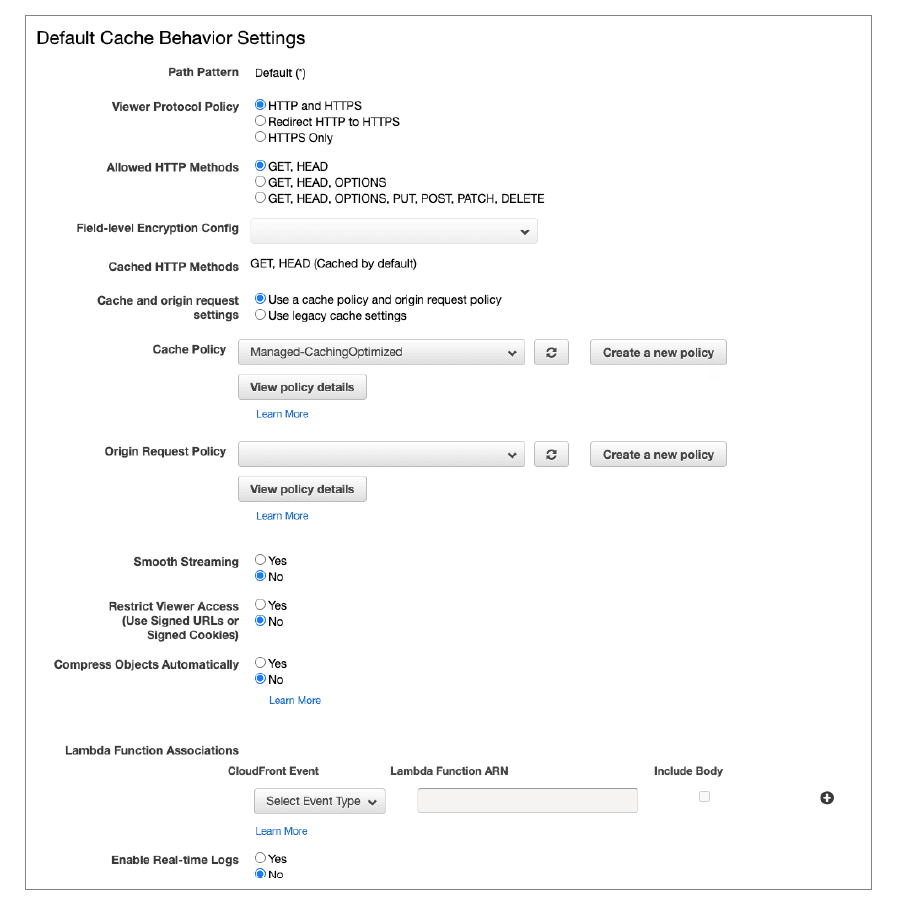 Default Cache Behavior Settings can be programmed according to internal policies defined by the application developers, information technology, DevOps, security teams, and other stakeholders. It is critical to emphasize the importance of understanding the degree of impact any changes to the values may have on the overall operation of the application. F5 Silverline recommends an evolutionary approach as each setting may introduce variances in cost, security exposure, performance impact, and interaction with the Silverline WAF or Bot/Fraud protection. AWS provides excellent documentation from the management console to help organizations understand how to apply each control and what impact it may have on existing operations. Our Silverline SOC analysts may also provide information on how these settings will affect the Silverline proxy, WAF or Bot/Fraud protection.