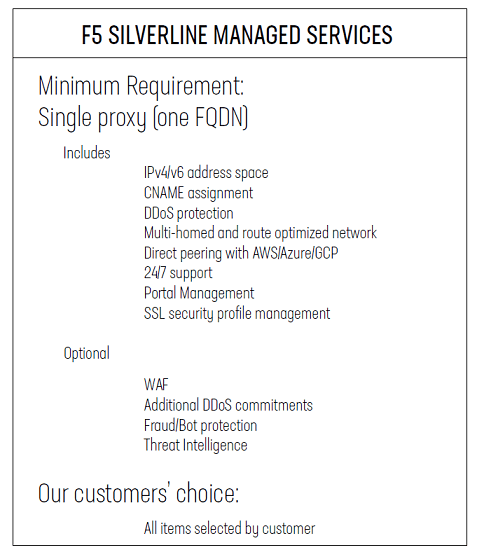 During the evaluation of various service and solution offerings that would potentially meet their requirements, our customer, a global IT solutions company, performed an extensive review of the variables involved in deploying and operating a solution that combines a content delivery network (CDN), Web Application Firewall (WAF), and protections against Fraud/Bots and distributed denial-of-service (DDoS) attacks. After considerable analysis and internal discussions with multiple teams, our customer determined that the best solution would be a combination of F5 Silverline and the Amazon CloudFront content delivery network.