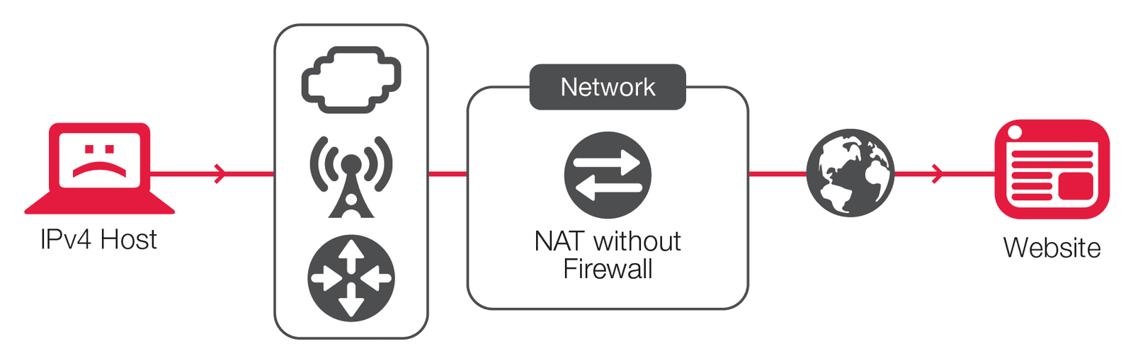 An argument could be made that a stateful NAT46 or NAT64 gateway may provide some security. However, this security would only be partial and short lived. CGNAT is mainly designed to translate traffic between hosts when one side has not converted to IPv6, which means that the ultimate goal is to remove the CGNAT device and allow native IPv6 traffic without translation. Without a carrier-class network firewall, the NAT device becomes the obstacle to full IPv6 migration for the operator.