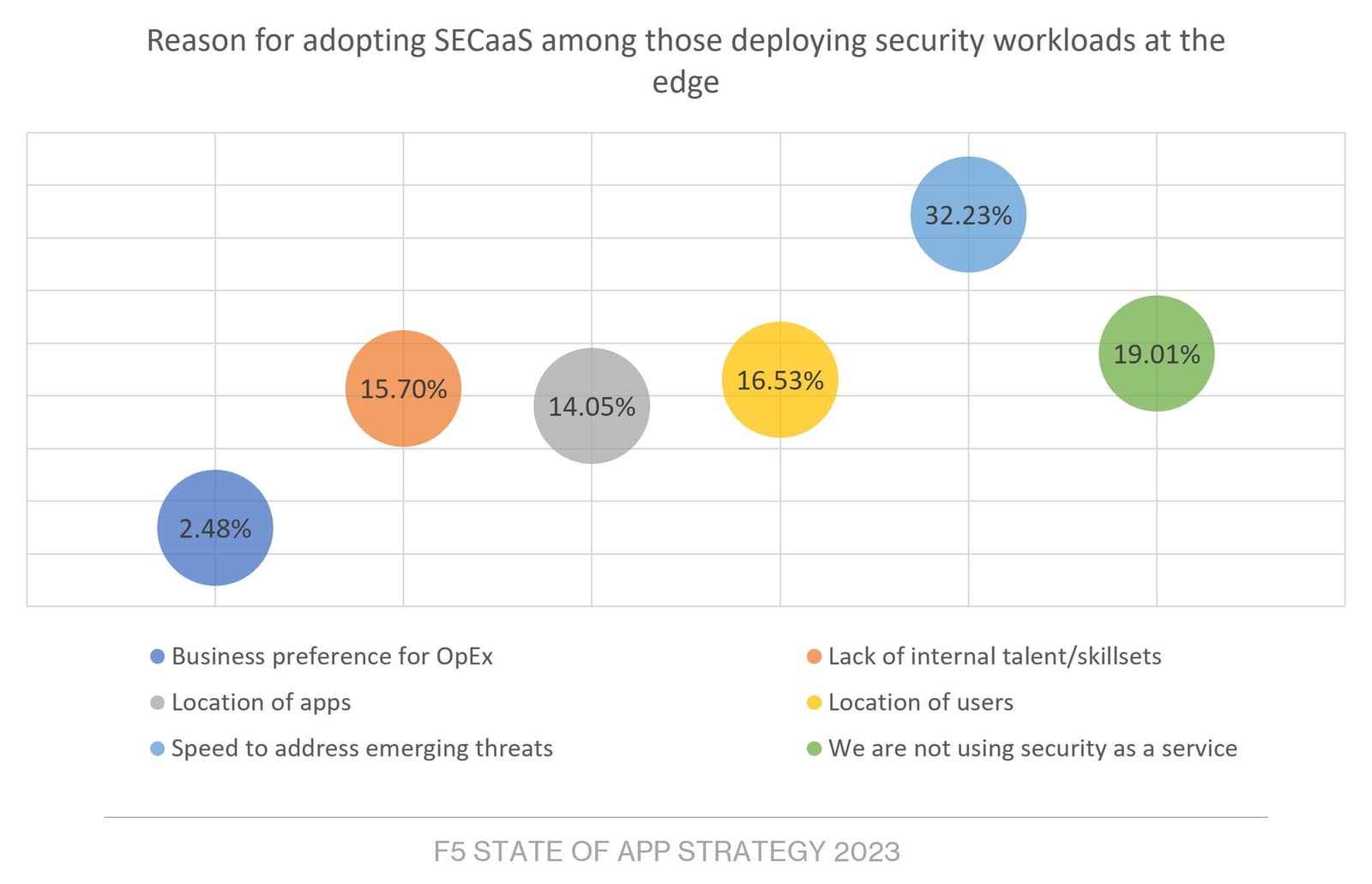 And when we looked at the types of workloads respondents planned to deploy at the edge, it is probably no surprise that those planning to deploy security service workloads tagged “speed to address emerging threats” as the top reason for adopting SECaaS.