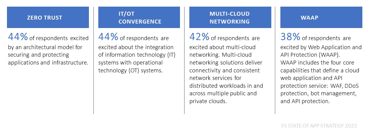 - 56% of respondents citing struggles with optimizing app performance tagged multi-cloud networking as “most exciting” technology