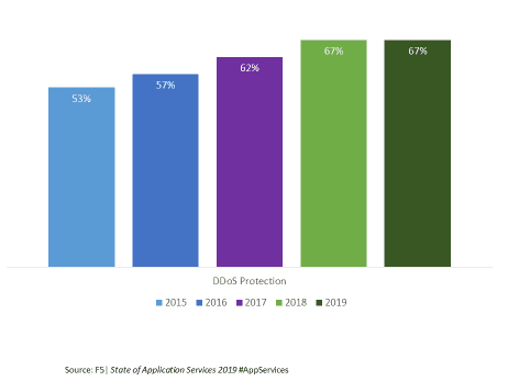 - DDoS Protection deployments are up to 67% from 53% in 2015