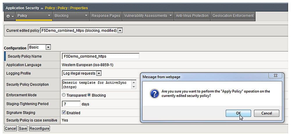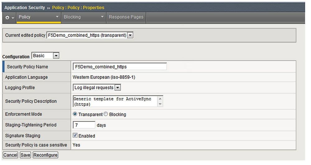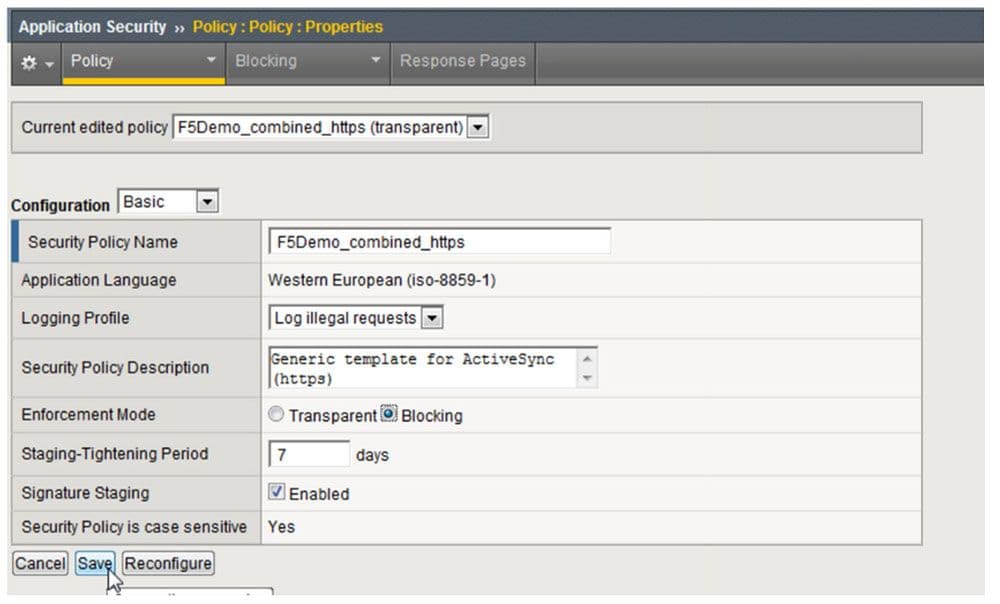 The BIG-IP ASM policy is now operating in "Blocking" mode.