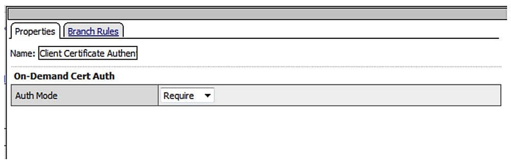 2. The existing BIG-IP APM access policy is modified. An "On-Demand Cert Auth" element is included. Once users have successfully authenticated with their credentials (username and password), BIG-IP APM will perform an SSL re-handshake and validate the client certificate against the trusted CA above. If validation fails, the session is terminated and access is denied.