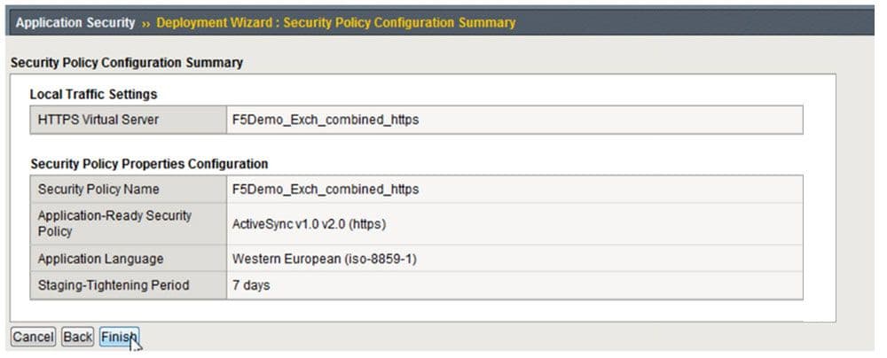 BIG-IP ASM is an extremely robust application and as such can be rather time-consuming to deploy. Fortunately, F5 has developed a number of preconfigured templates to drastically reduce the time and effort required. This is the case with Exchange ActiveSync. The following steps are required to implement BIG-IP ASM for Exchange ActiveSync.