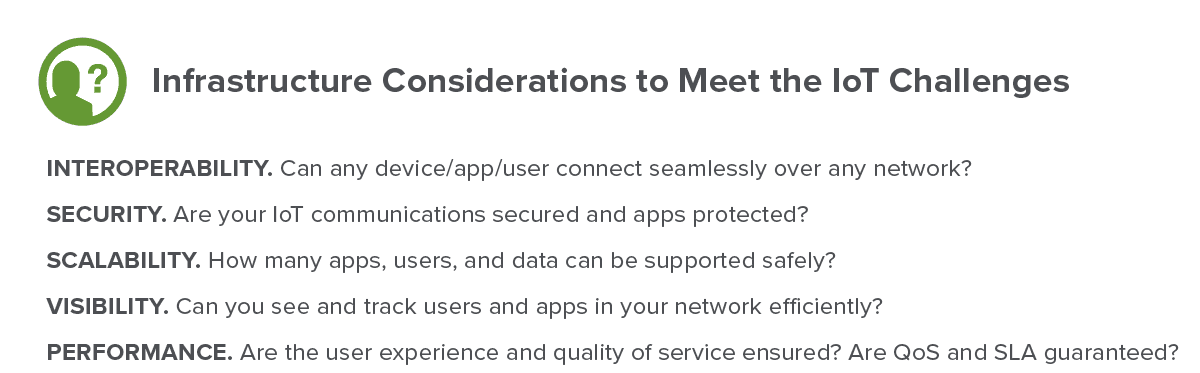 To handle the diverse number of IoT devices, coupled with requirements such as an ultra-low latency for certain use cases, the prioritization of each device, and corresponding requirements for IoT applications, service providers need to deploy secure, scalable, available, and high-performance solutions across their networks—from the device to the applications in data centers.