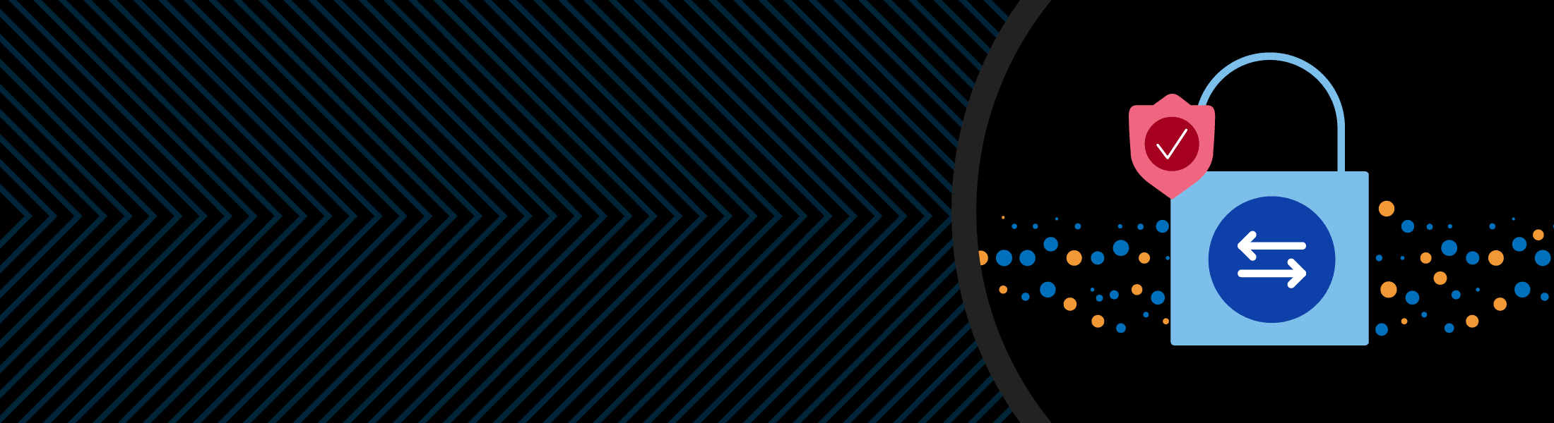 Webpage with lock, shield with checkmark, magnifying glass with left and right arrow