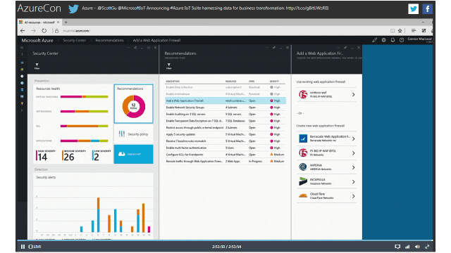 Within Azure Security Center, the F5 web application firewall solution enables organizations to identify and stop sophisticated, complex threats with a higher level of security effectiveness. It provides unique, proactive bot defense and more accuracy than other solutions in detecting and mitigating brute force, CSRF, XML, and zero-day attacks. It can dynamically impose needed protections to prevent attacks from ever reaching the servers.