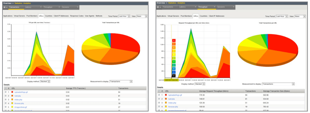 F5’s customer experience reporting graphically maps service response times across the customer base and provides information about service utilization, client response time, server response, and many other parameters. This helps IT managers correctly size service implementation without compromising customer satisfaction. F5 Analytics provides detailed reporting on customer experience metrics and a host of rich reports that assist in server capacity planning and that justify the ROI on new service rollouts by tracking their usage.