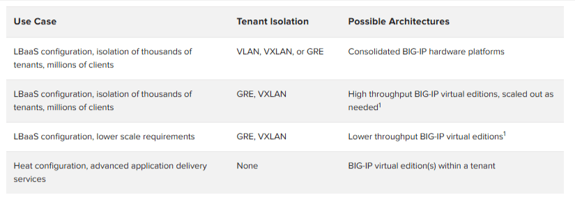 To understand in more detail how and when these multi-tenancy features are used, consult the F5 OpenStack LBaaS Driver and Agent Readme.