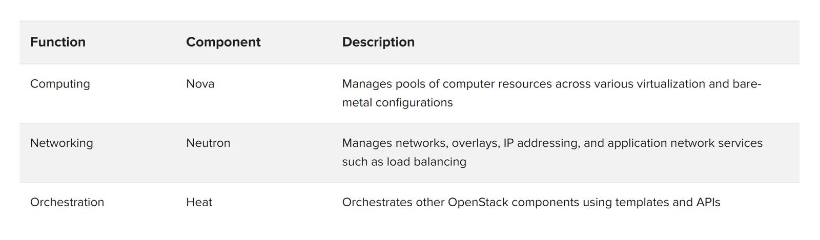 OpenStack is composed of a number of components that provide the various services required to create a cloud computing environment. These components are amply documented elsewhere. There are, however, a number of modules that are directly relevant to an F5 OpenStack deployment.