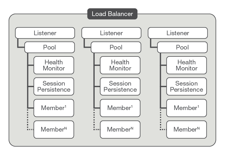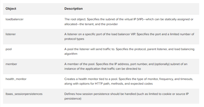OpenStack LBaaS relies on a number of logical objects to create a load balancing configuration.