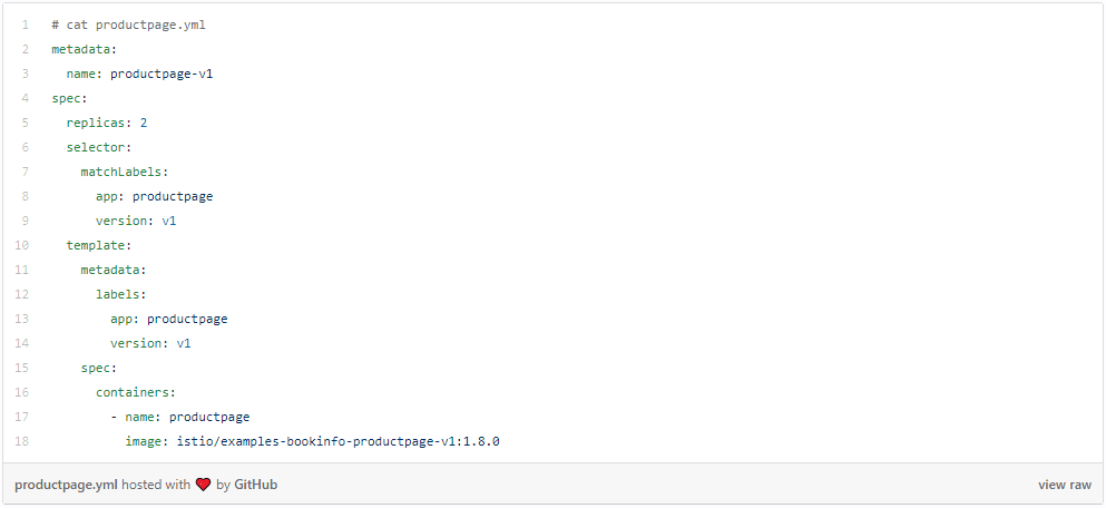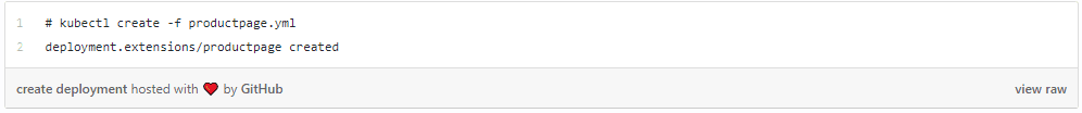 As the next step, the user downloads the kubeconfig for this virtual cluster and creates standard yaml to describe a K8s deployment for productpage.