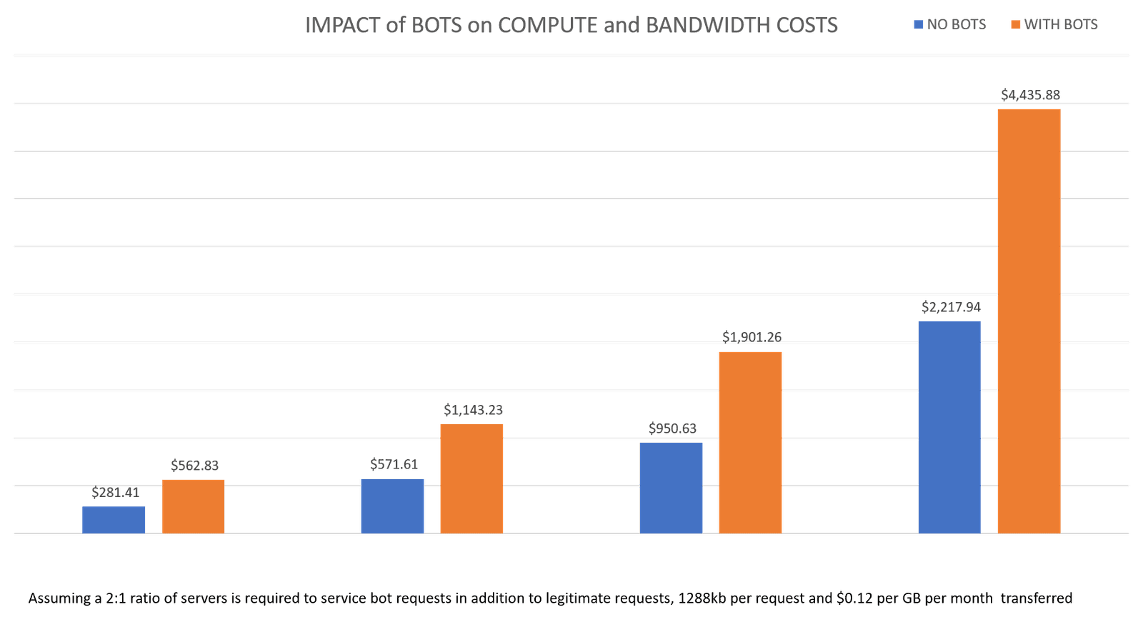 Which basically means you're paying twice as much as you need to for server instances because of bots. If you typically needed 5 instances to service legitimate requests, that'd be about $1401.60 per year. Now double that to deal with bots, and now you're paying $2803.20 per year.