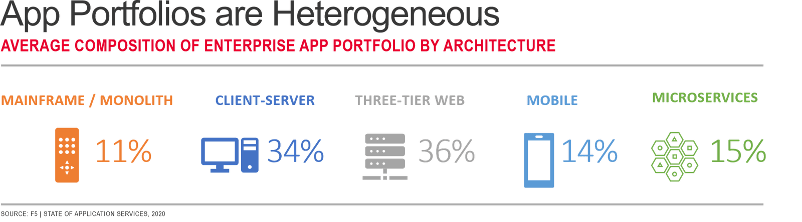 Application architectures have evolved several times since the early days of computing. For some long-lived enterprises, they are on their fifth distinct application architecture. Many are operating and maintaining applications in each one today. To wit, findings from our forthcoming State of Application Services in 2020 indicate this is the reality most orgs operate in: