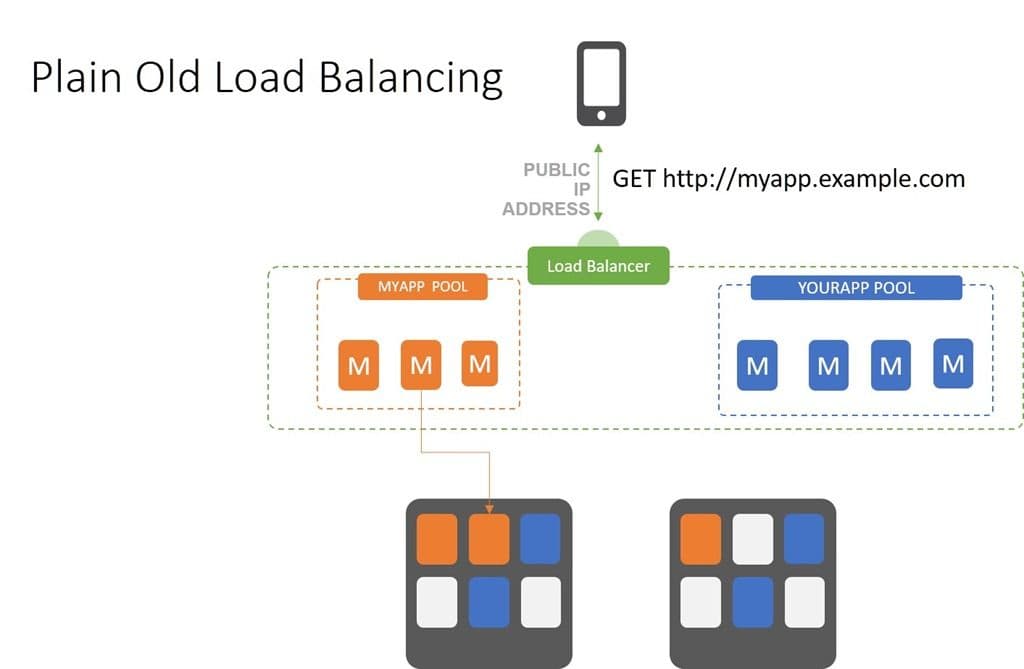 Plain Old Load Balancing (POLB) is a term I like to use to describe standard, TCP-based load balancing. Availability is achieved using this pattern simply by cloning apps and making sure a connection between the client (user, device) and the app can be made.