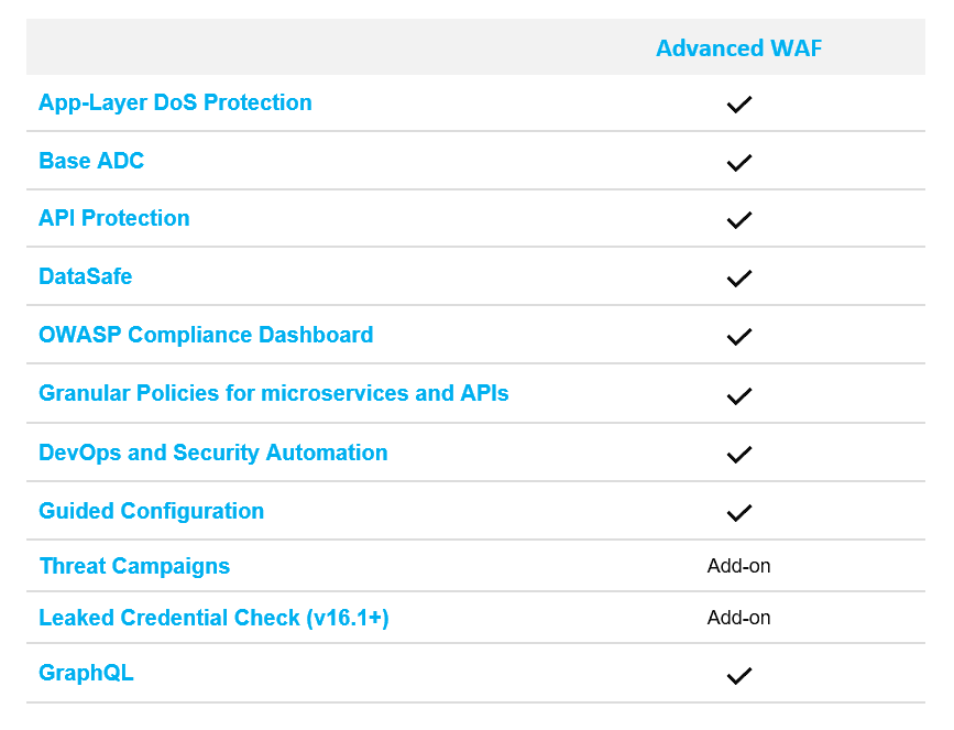 Another alternative—and perhaps a better one for the many reasons listed below—is for existing customers to upgrade to Advanced WAF version 14.1 or higher (or switch license if running ASM 14.1) at no cost as of the EoS date. Since Advanced WAF is based on the same proven technology as BIG-IP ASM, the migration is straightforward. To leverage this no-cost migration, simply reactivate your license key, and after migrating, you will start seeing the Advanced WAF feature flags listed here: