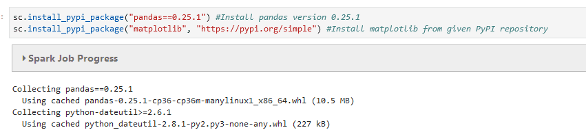 We got an object spark which we will reference later, and we also got sc, which is our spark context. We can then use that to load in pandas and Matplotlib.