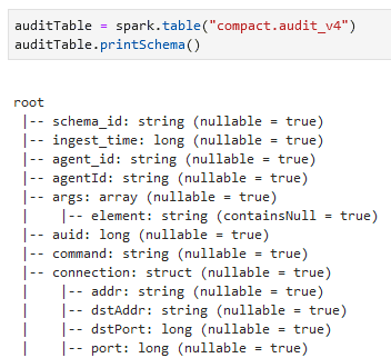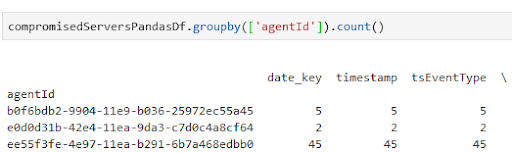 Great, now I can see what columns and types I have available to start running my SQL queries against. I can now take any server, and any time range I want, and compare them. Here, I’m creating two Spark DataFrames, gathering the data I’ll need to do pre-incident investigation and post-incident forensics: