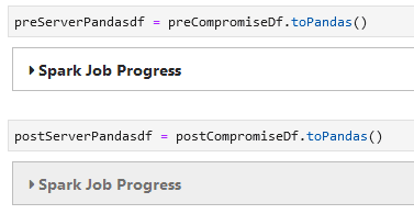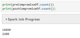 That seems right. I have a much larger time range for my preCompromiseDf versus my postCompromiseDf. (The “Df” is to help me remember that these are Spark DataFrame objects — simply a naming convention.)