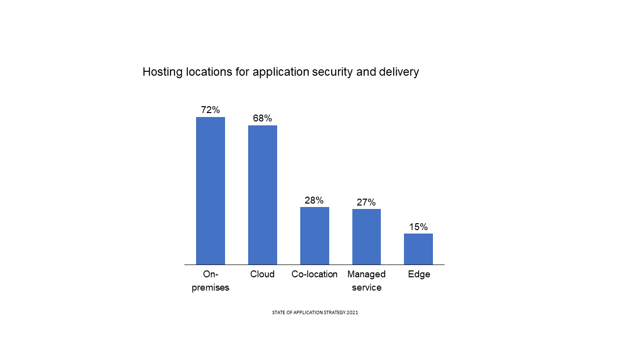Application security and delivery technologies are hosted in all flavors of data centers from on-premises to the edge. This year, cloud began to reach parity with on-premises, and the edge emerged as an important location to increase performance, meet compliance requirements, and collect telemetry.