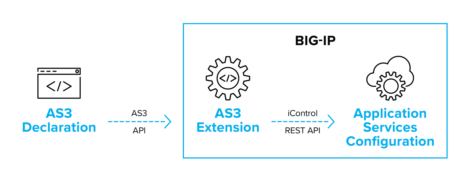 The AS3 extension ingests and analyzes the declarations and makes the appropriate iControl API calls to create the desired end state on the target BIG-IP. The extension can run either on the BIG-IP instance or via AS3 Container – a separate container/VM that runs the AS3 Extension, and then makes external API calls to the BIG-IP.