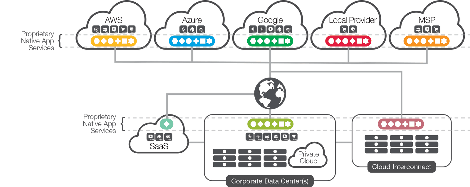 The “cloud” isn’t an amorphous single entity of shared compute, storage, and networking resources; rather, it is composed of a complex mix of providers, infrastructures, technologies, and environments that are often deployed in multiple global nodes. This is the reason many enterprises have actually deployed applications into a number of different clouds—public, private, and even combination of them all. This is multi-cloud: the new reality.