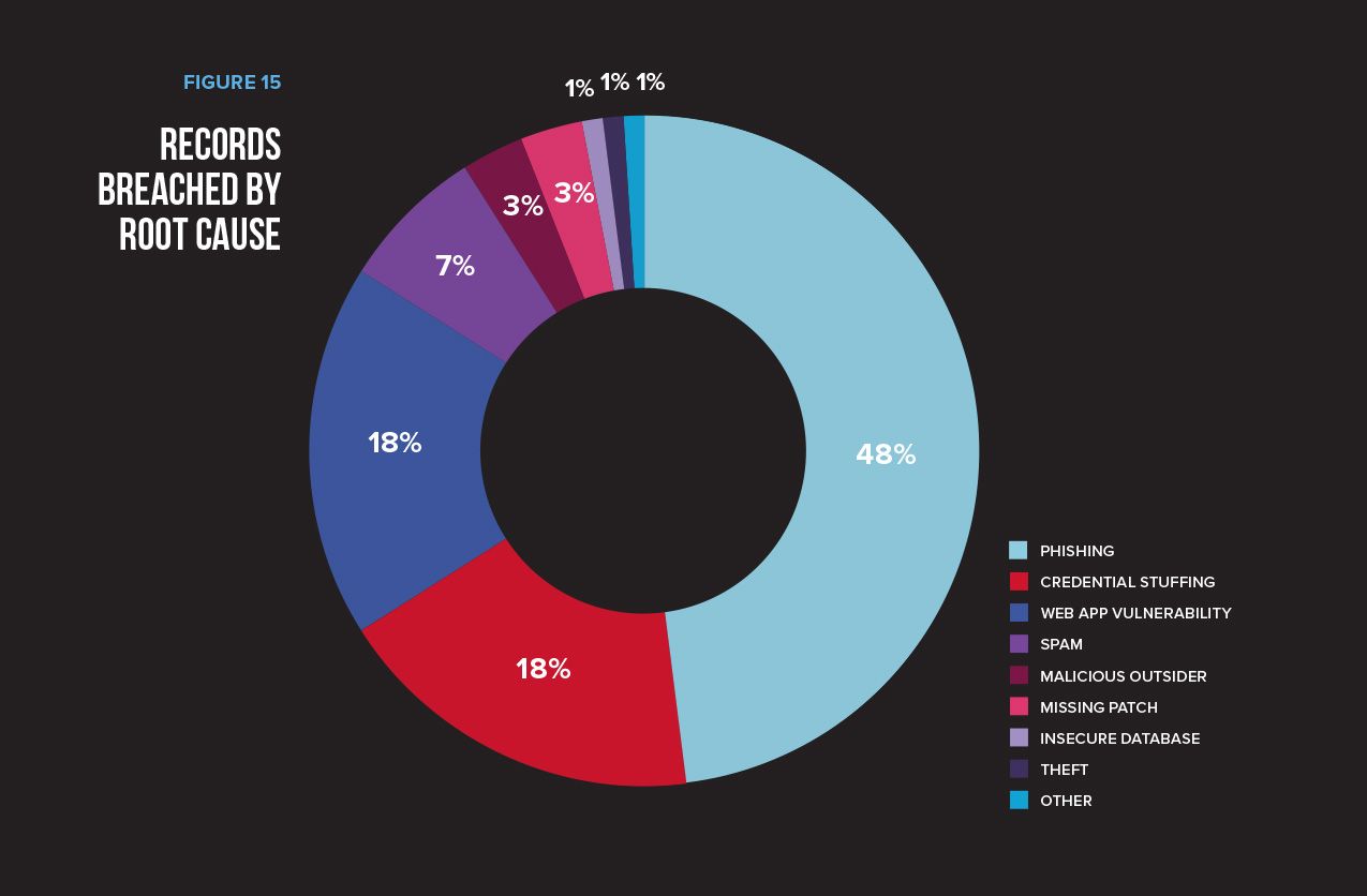 In the cases we researched, identities were the initial attack target in 33% of the breaches. Most of these attacks were attributed to phishing; it turns out tricking a user into giving up their credentials is remarkably easy, despite the industry’s security awareness training efforts. Thanks to social media and consumers’ eagerness to share every aspect of their personal lives (see data collected from various public forms (/content/f5-labs/en/labs/articles/threat-intelligence/phishing-the-secret-of-its-success-and-what-you-can-do-to-stop-it.html)), phishing attacks will remain highly effective for the foreseeable future.