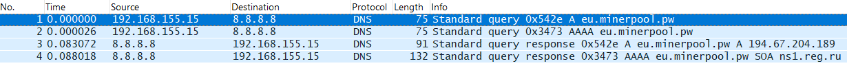 Figure 14: DNS query to the get the mining pool server’s IP address