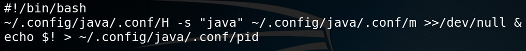 More interesting is the “H” file, which is an old XHide tool for launching executables with a fake process name.