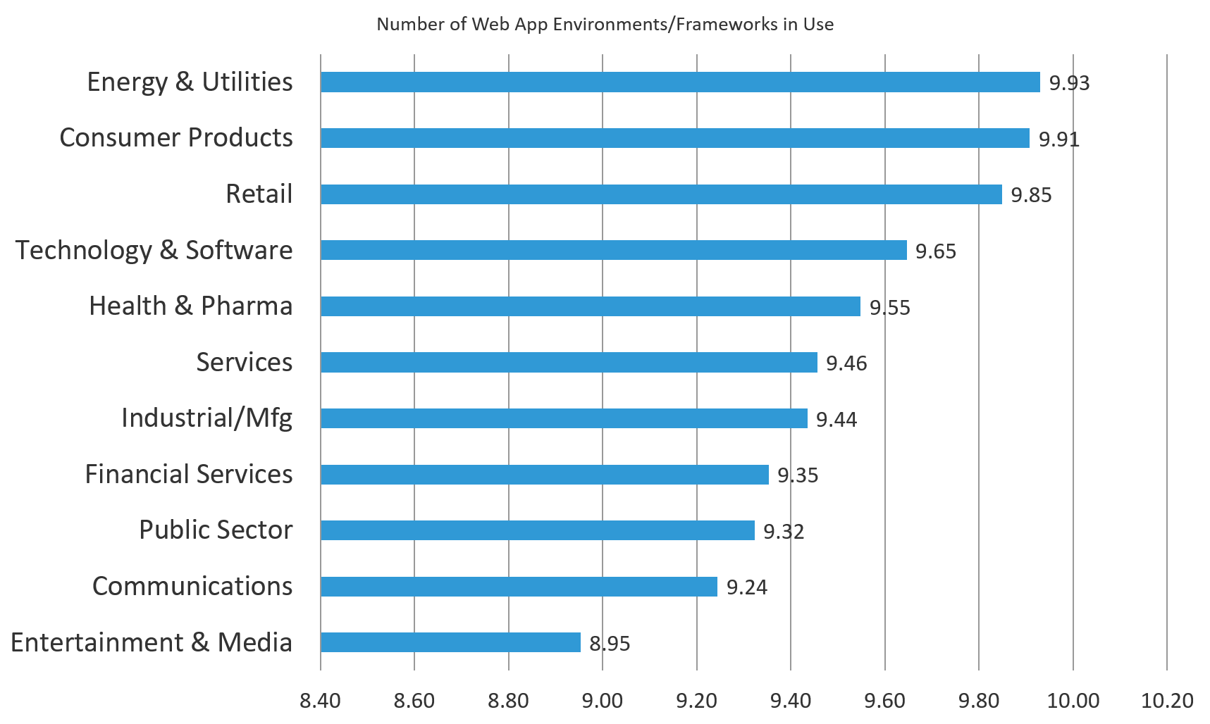 Figure 4: Nearly every industry uses nine or more web app environments or frameworks