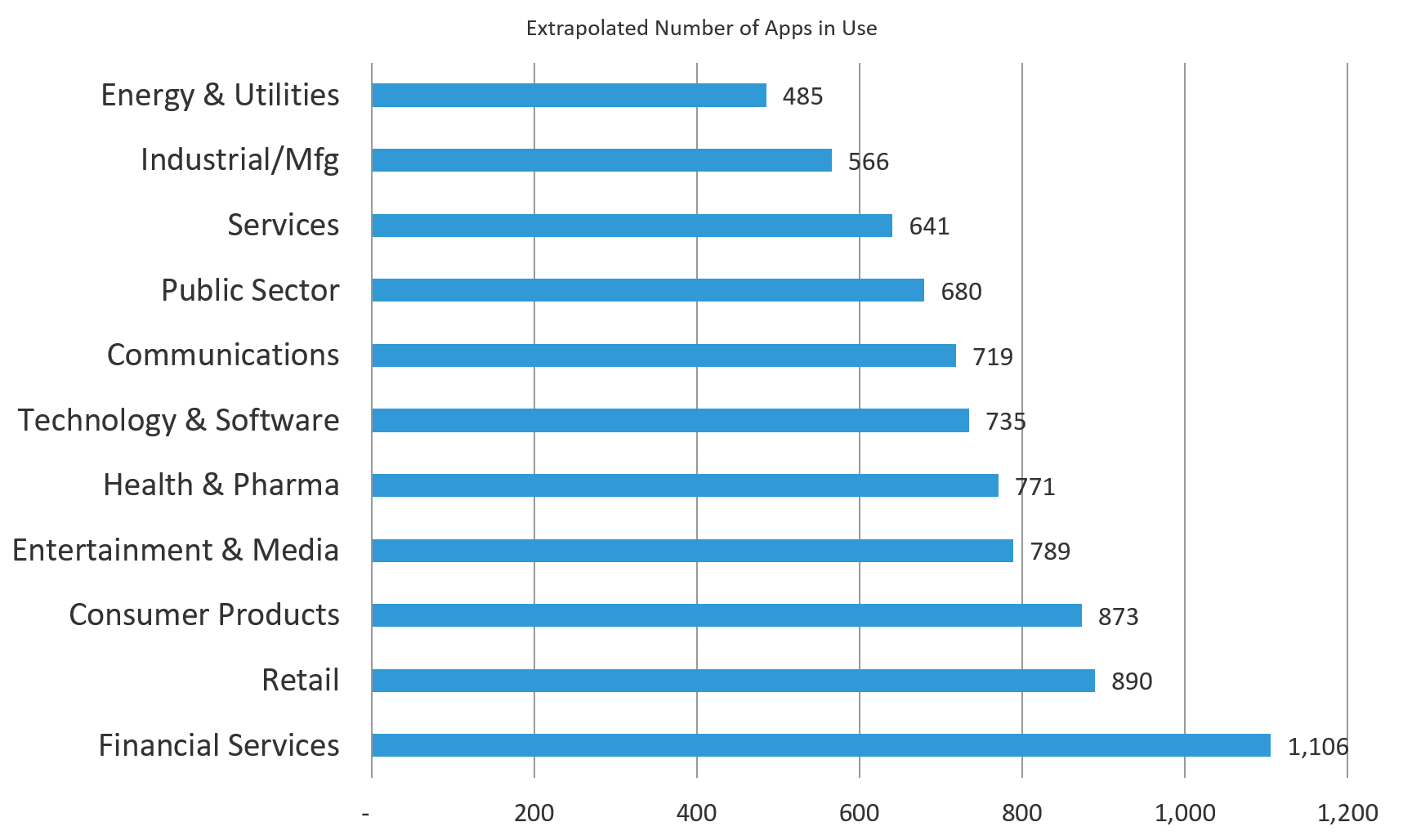 Figure 2: Financial Services firms use more than twice as many applications as the Energy & Utilities companies