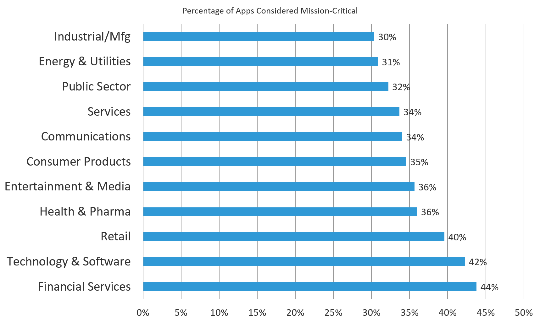 Figure 3: Nearly all industries identified one-third or more of their apps as mission-critical