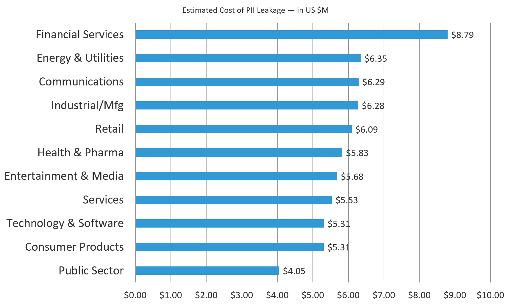 Figure 6: Financial Services estimated breach cost of leaked PII is more than double that of the Public Sector