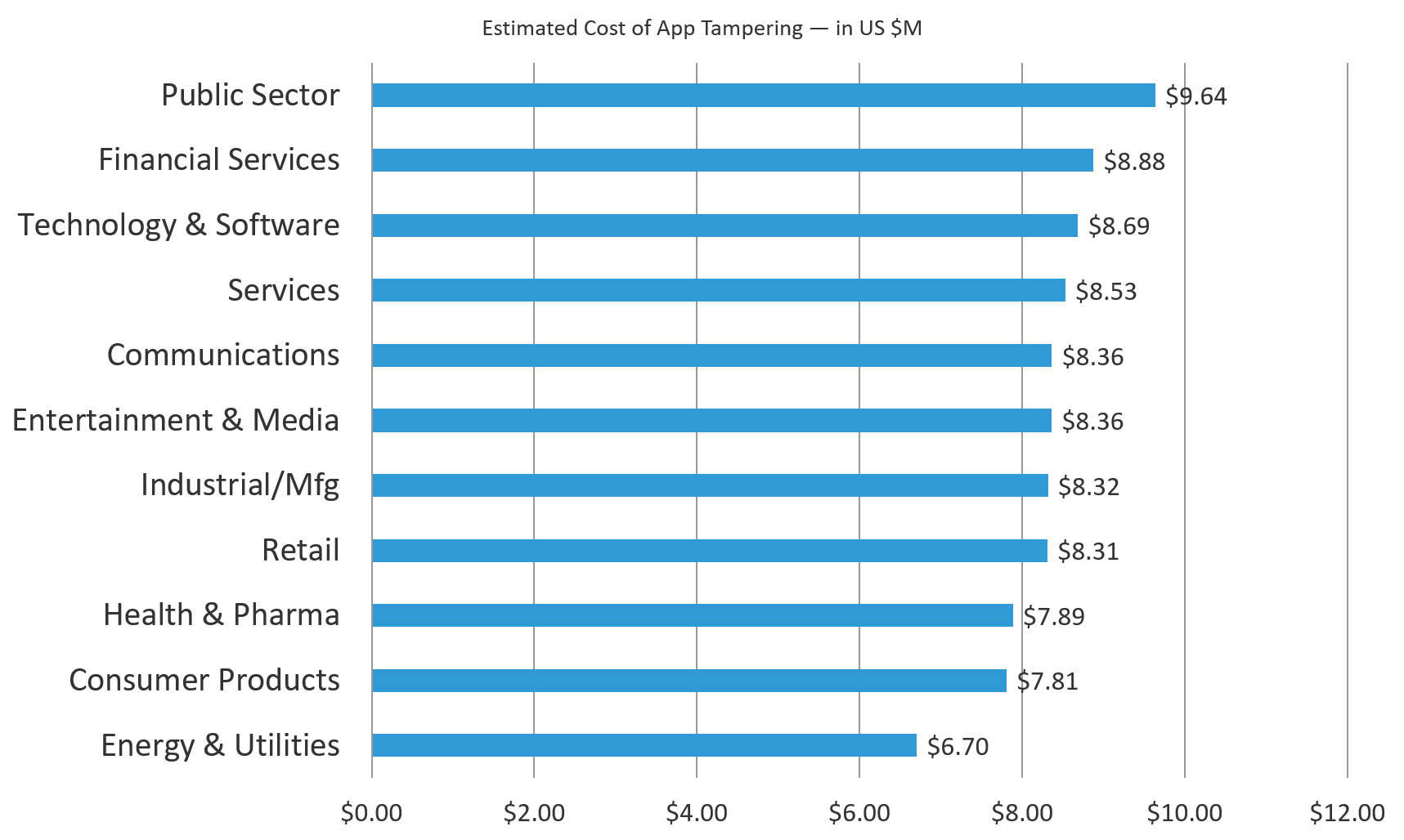Figure 8: Public Sector estimated cost of app tampering is 44% higher than that of Energy & Utilities