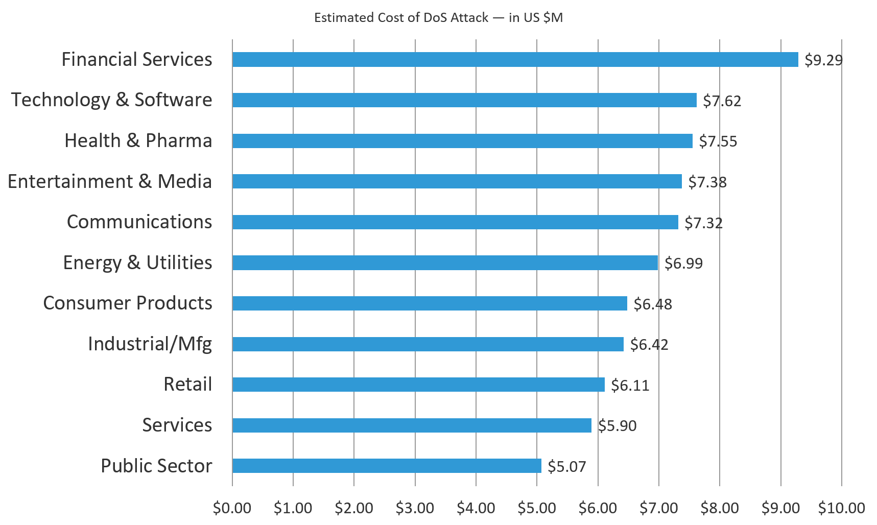Figure 7: Financial Services estimated cost of a DDoS attack is 83% higher than that of the Public Sector