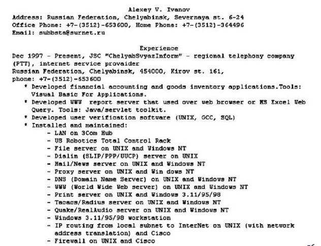 With the limited resources of Russia—then only a decade out from the fall of the Soviet Union—talented and ambitious technologists had to teach themselves and stretch every resource they had. Gorshkov told me, “We build computers ourselves because it is much cheaper and much faster.” Those who succeeded were often highly creative and innovative and also possessed a deep understanding of technology, as is evident from my interview with them, Ivanov’s resume, and the array of hacking tools discovered during the forensic investigation.